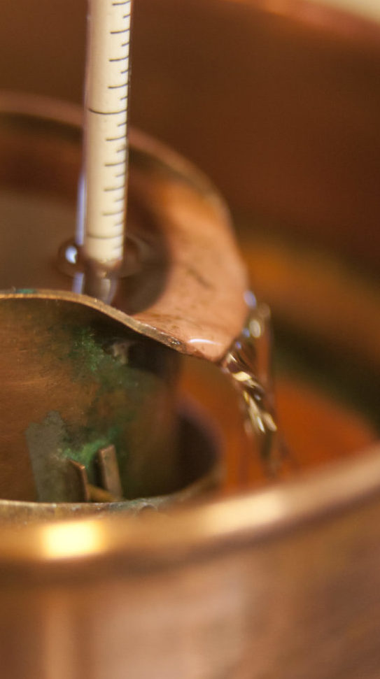 De la fin de l'année jusqu'à fin mars, arrive la période de la distillation : un moment crucial dans l'élaboration du cognac. En effet, la distillation s'effectue en deux temps au moyen d'un alambic : après avoir obtenu un premier distillat appelé "brouillis", celui-ci subit une seconde distillation, appelée "la bonne chauffe".